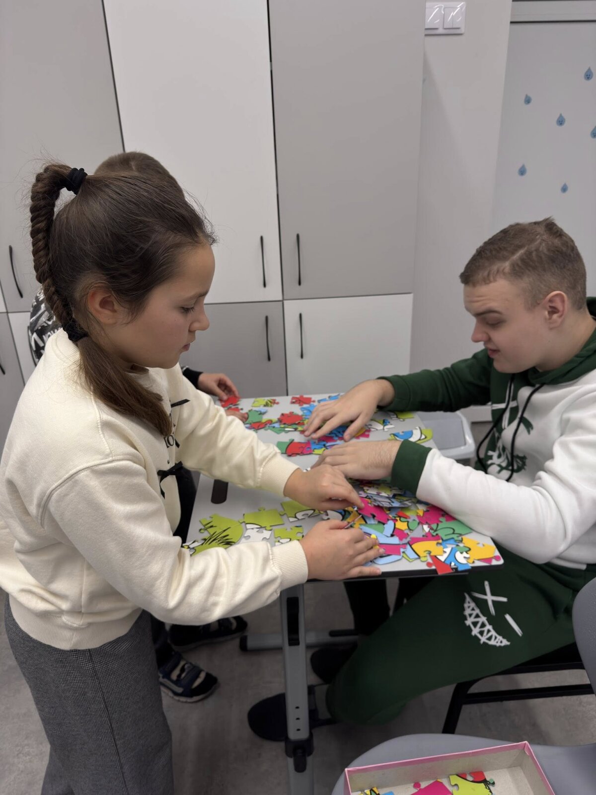 2025 m. lapkričio 19 d. 3a klasės mokiniams kartu su lavinamųjų klasių mokiniais buvo organizuota integruota lietuvių kalbos, dailės ir technologijų pamoka „Pasakos ir jų veikėjai“. Pamokoje lietuvių kalbos žinios buvo siejamos su kūrybine veikla. Vaikai skaitė pasaką „Raudonkepuraitė“, aptarė pasakų veikėjus, išsiaiškino, kad jie būna pagrindiniai ir šalutiniai, piešė labiausiai patikusį veikėją ir jį spalvino. Trečiokai įgijo naujos patirties: mokėsi dirbti grupelėse su mokiniais, turinčiais individualių ugdymosi poreikių. Dirbdami draugiškai, pasitardami jie dėliojo dėliones ir atpažino įvairių pasakų veikėjus. Iššūkiu tapo tai, kad reikėjo patiems pasigaminti savo dėlionę su patikusiu pasakos „Raudonkepuraitė” veikėju.