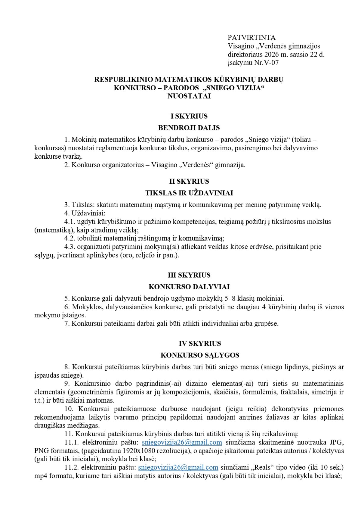 Kviečiame susipažinti su respublikinio matematikos kūrybinių darbų konkurso-parodos „Sniego vizija“ nuostatais ir aktyviai dalyvauti.