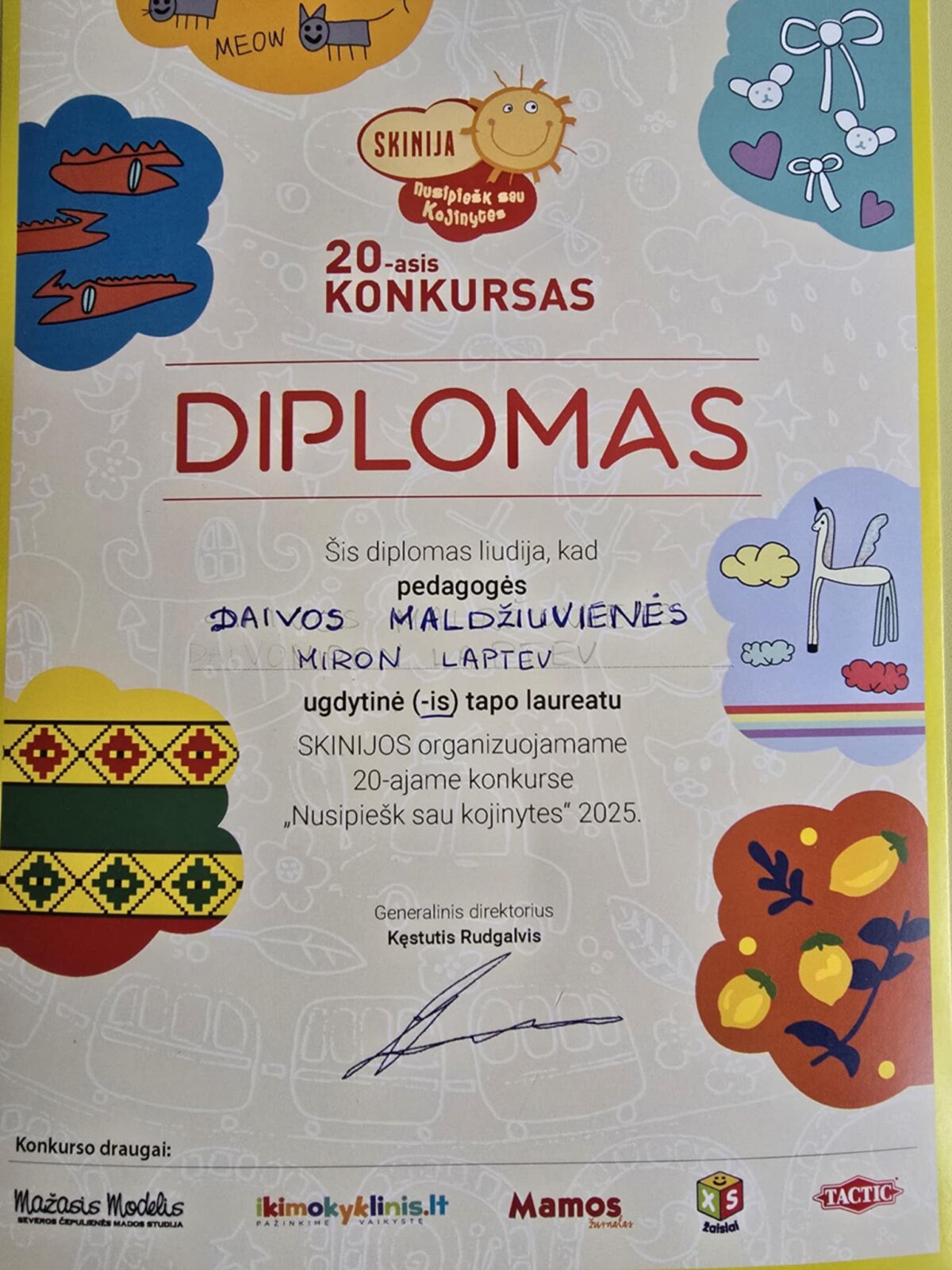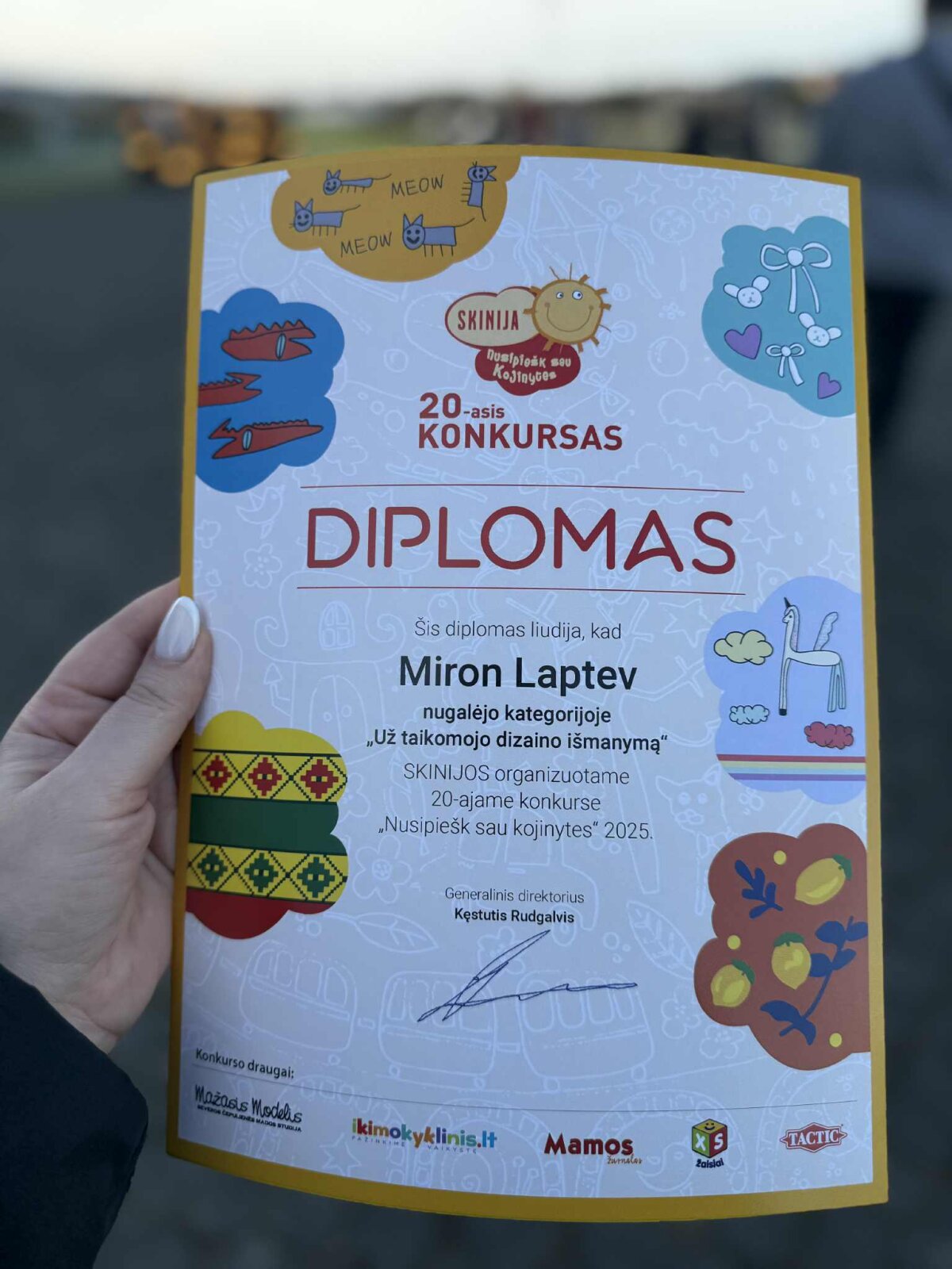 Sveikiname 2a klasės mokinį Mironą Laptevą nugalėjus kategorijoje ,,Už taikomojo dizaino išmanymą”.