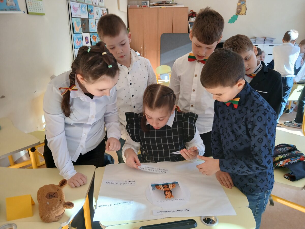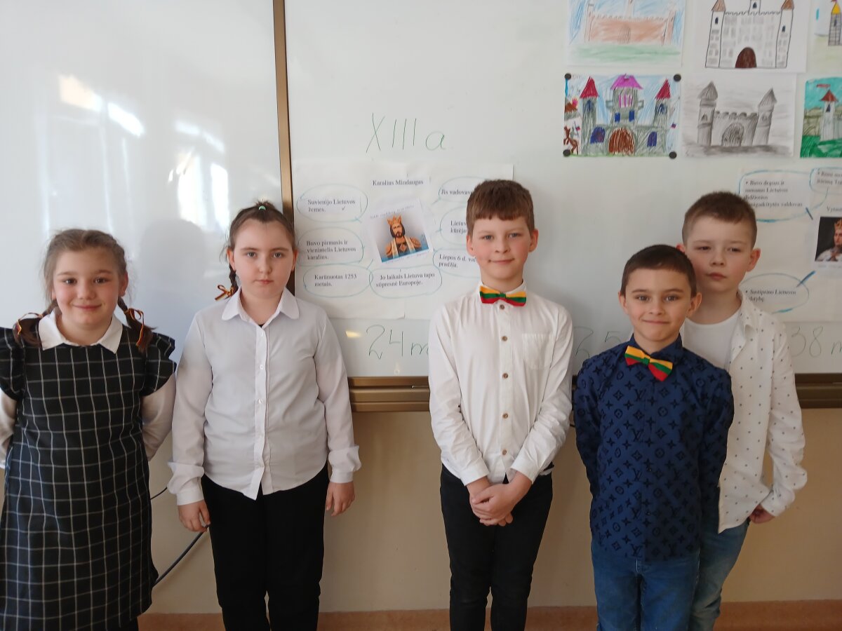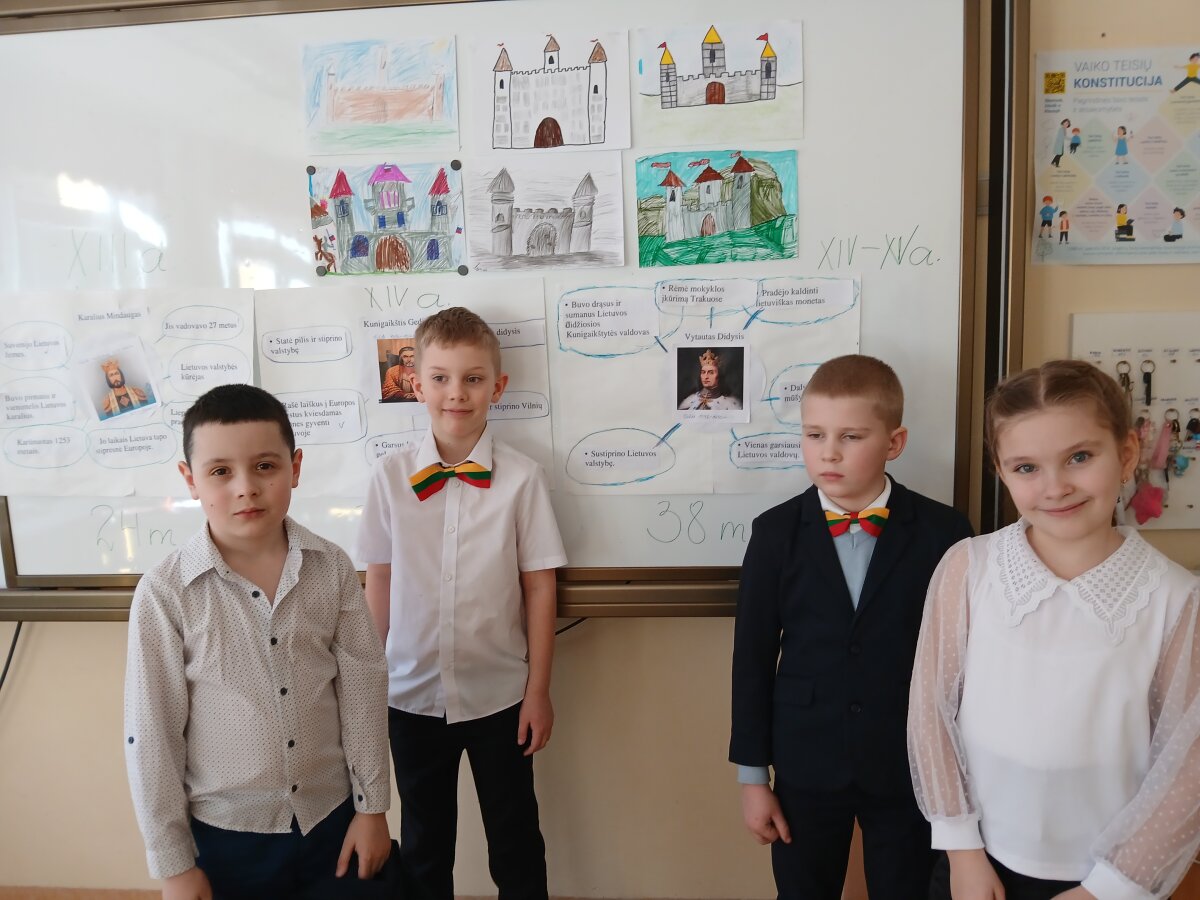 2026 m. kovo 10 d. 2b klasėje vyko integruota dienos veikla „Kas garsino Lietuvos vardą praeityje?“. Mokiniai susipažino su trimis Lietuvos valdovais – karaliumi Mindaugu, kunigaikščiais Gediminu ir Vytautu Didžiuoju. Antrokai išsiaiškino svarbiausius faktus apie jų gyvenimą ir darbus, sudarė „burbulo“ mąstymo žemėlapį. Per lietuvių kalbos veiklas mokiniai sakiniuose ieškojo veiksmo žodžių, matematikos pamokoje skaičiavo valdovų valdymo metus ir lygino, kas valdė ilgiau. Gamtos mokslų pamokoje aptarė pilis – kur jos statomos ir kokia gamta jas supa.