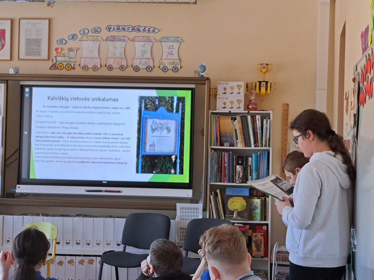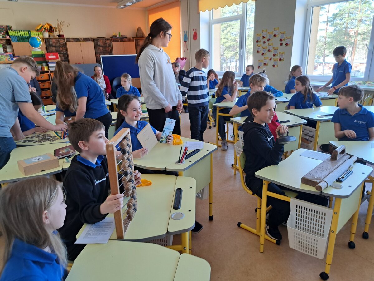 2026 m. kovo 16 d., Knygnešių dieną, lietuvių kalbos mokytoja Marija Kirkienė su jaunųjų muziejininkų būrelio ,,Praeities saugotojai, ateities kūrėjai“ nariais 4b klasės mokiniams organizavo edukaciją „Knygnešiai“.