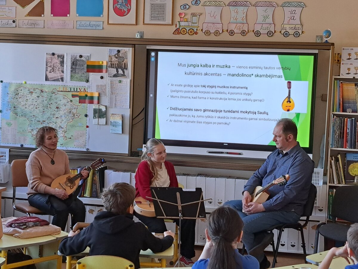 Mandolinų skambesys ketvirtokams padėjo atverti praeitin vaizduotės duris. Jie susipažino su knygnešių ir daraktorių istorija. Stebėjosi knygnešių drąsa ir kova už laisvę lietuviškos spaudos draudimo Lietuvoje laikotarpiu. Suprato, koks svarbus daraktorių vaidmuo mokant skaityti ir rašyti lietuvių kalba. Mokiniai aiškinosi svarbias sąvokas, susijusias su šiuo laikotarpiu, dėliojo knygnešių veiklą iliustruojančias dėliones ir stebėjo animacijas, kuriose atgijo knygnešiams bei daraktoriams skirti paminklai. Mokiniai užrištomis akimis bandė atspėti gimnazijos muziejaus eksponatus, susijusius su daraktorių ir švietimoveikla. Sužinojo apie lietuvybės židinius netolimose Visagino apylinkėse: Magūnų dvare ir kaime, Kalviškių vietovėje. Visas edukacijos užsiėmimo mokomąsias priemones sukūrė jaunųjų muziejininkų būrelio nariai.