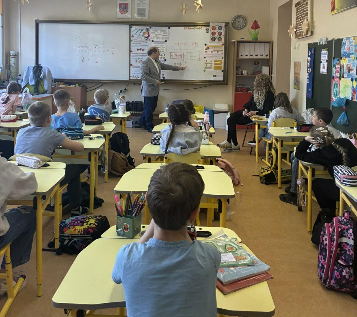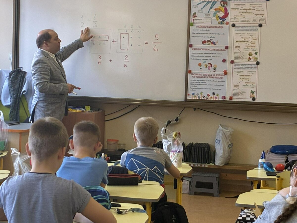 Pamoką vedė mokinės Ksenijos Volosatovos tėtis Jevgenij Volosatov, kuris mokiniams pateikė temą kūrybiškai ir įtraukiančiai. Pamokos metu mokiniai aiškinosi, kas yra trupmena, bei mokėsi sudėti įvairias trupmenas taikydami vaizdinį metodą. Taip pat buvo aptarta, kada gauta suma yra didesnė ar mažesnė už pusę. Pamokos pabaigoje mokinių laukė smagus praktinis tyrimas – naudodami slankmatį jie matavo popieriaus lapo storį ir lankstė jį pusiau. Vaikai su nuostaba sužinojo, kokį aukštį pasiektų lapas, jei jį pavyktų sulenkti net 16 kartų.