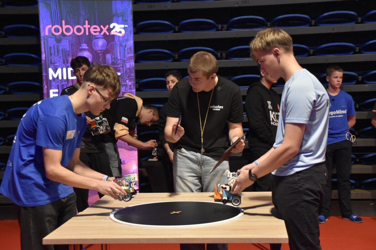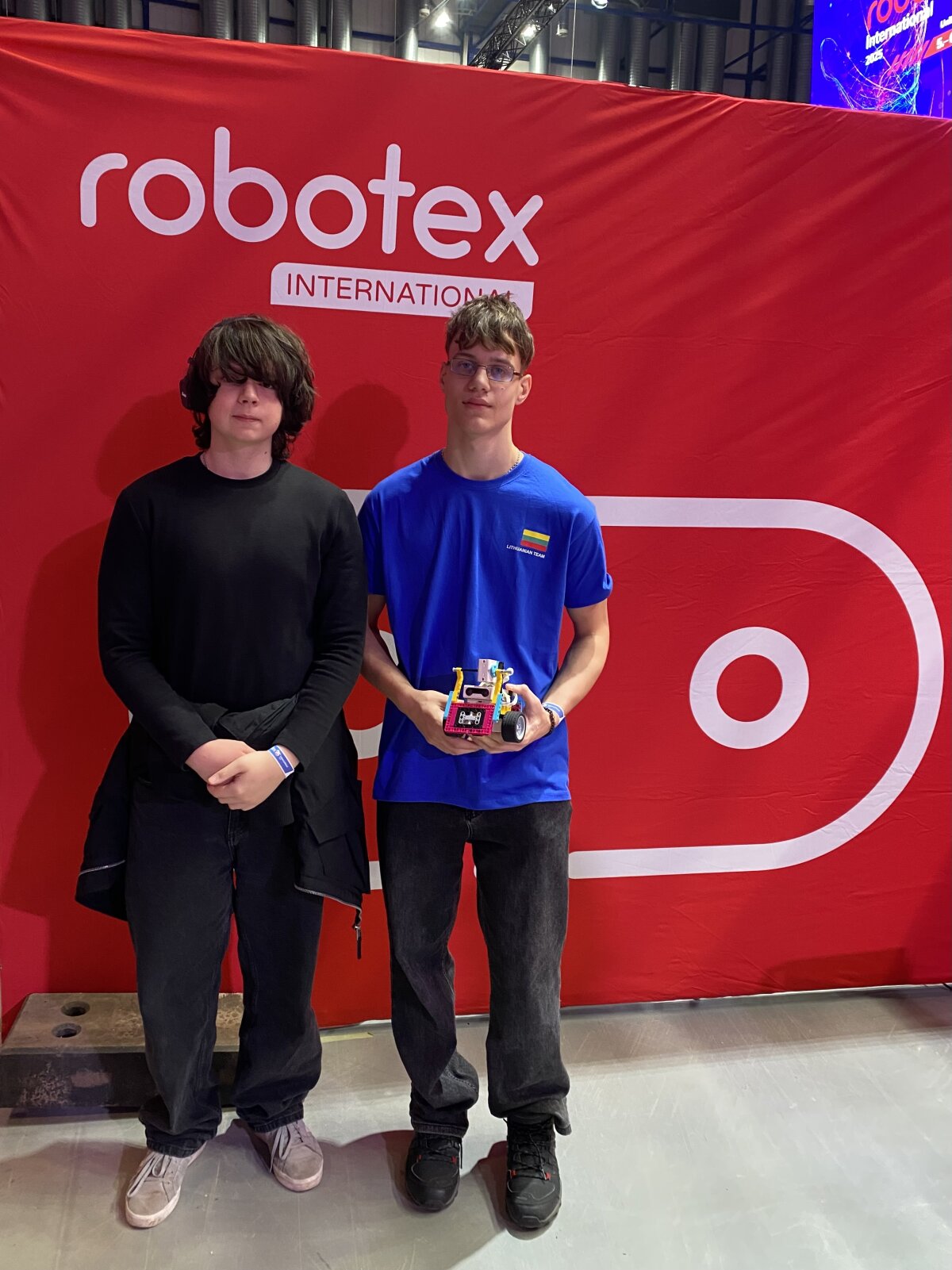 Šiais metais mūsų gimnazistai, tarptautinio projekto „SkillRiskRobo“ dalyviai, gruodžio 5-6 dienomis rungtyniavo prestižinėse pasaulyje robotų programuotojų varžybose „Robotex International 2025“, kurie įvyko Talino (Estija) Unibet Arenoje.