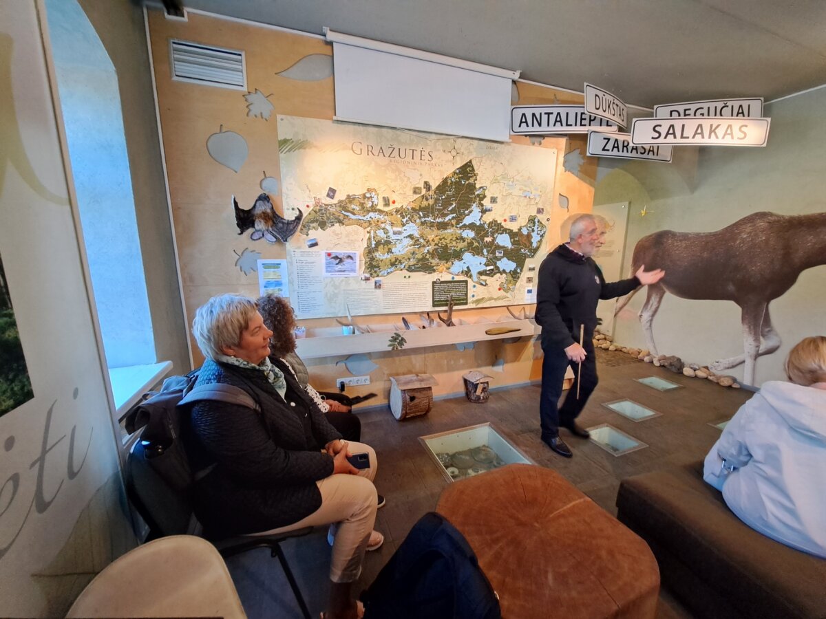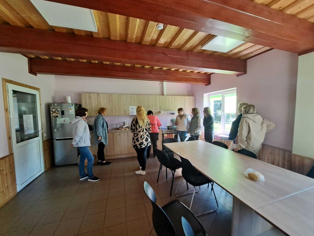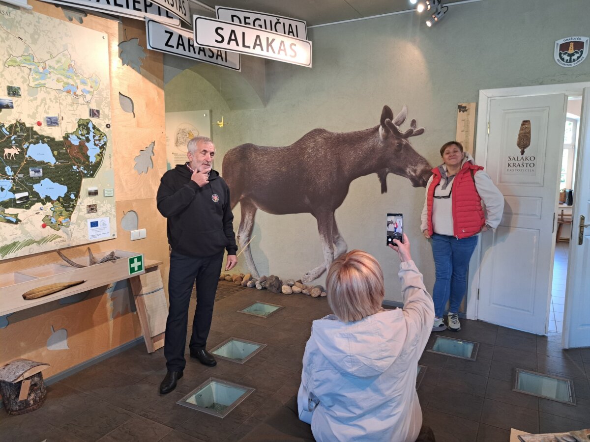 Gražutės regioninio parko grupės patarėjas Leonas Sadauskas supažindino su parko ekspozicijomis bei pristatė netikėtą atradimą – mažą, bet įspūdingą „Jūrų muziejų“. Mokytojos aplankė Antano Sutkaus, Nacionalinės kultūros ir meno premijos laureato, fotolauko parodą „Salako miestelio istorija ir veidas“, atskleidžiančią Salako miestelio grožį ir dvasią. Valė Vaitkevičienė, garsi Salako kulinarė, papasakojo apie tradicinio „Šimtalapio“ kepimo paslaptis ir pakvietė pačioms išbandyti šį procesą. Kvepiantis, dar šiltas šimtalapis tapo tikru dienos akcentu. Salako Švč. Mergelės Marijos Sopulingosios bažnyčia – didinga ir jauki vieta, kupina istorijos bei dvasinės ramybės labai tiko išvykos pabaigai.
