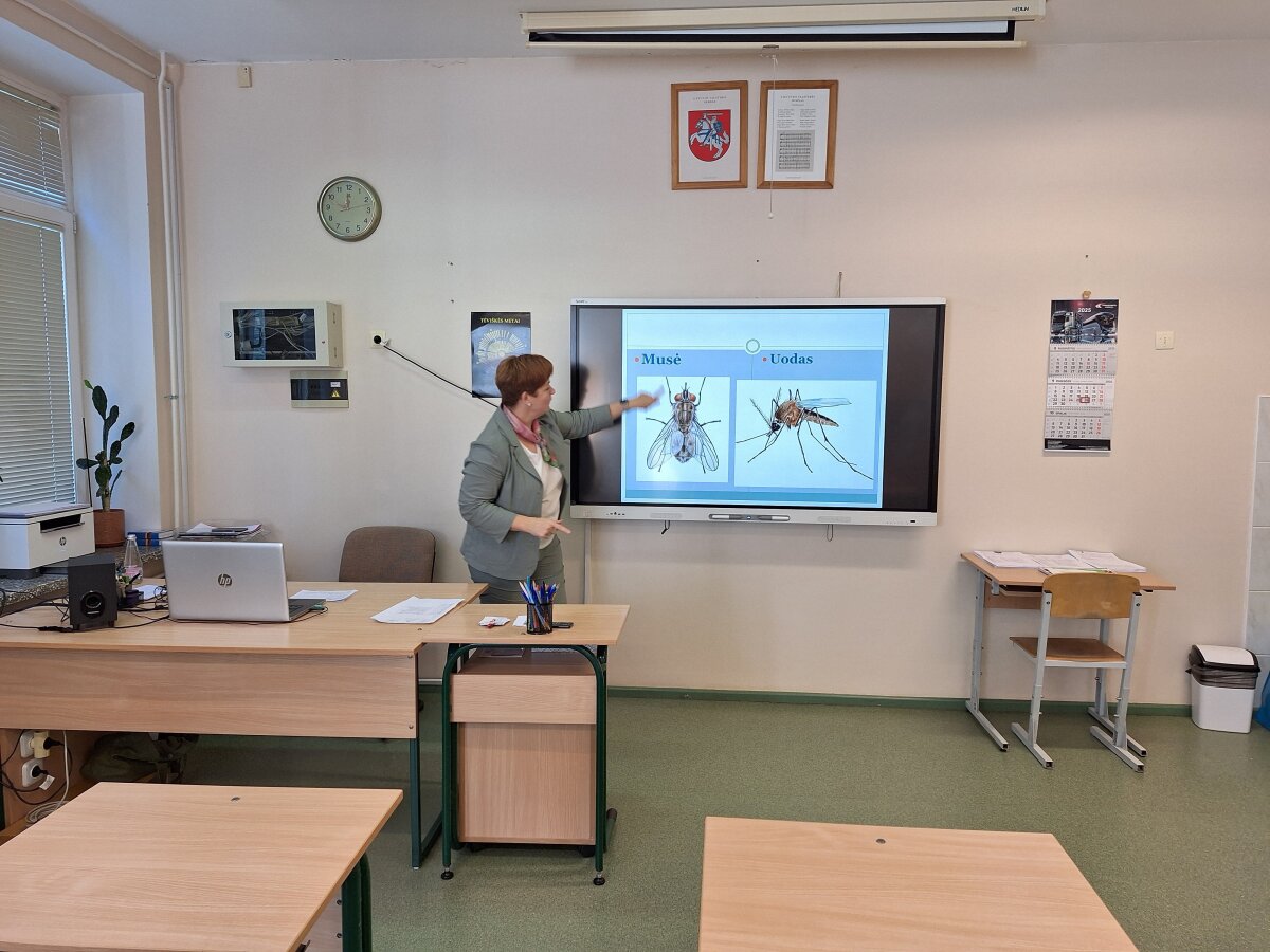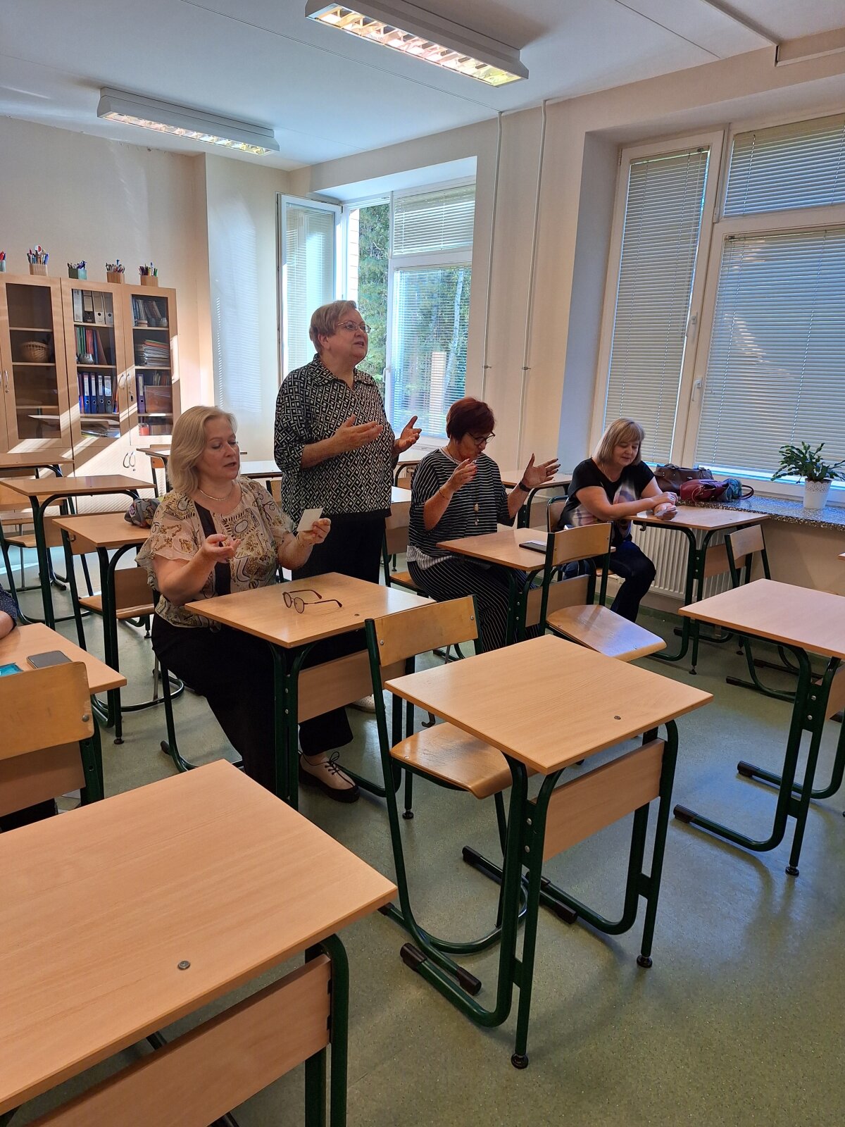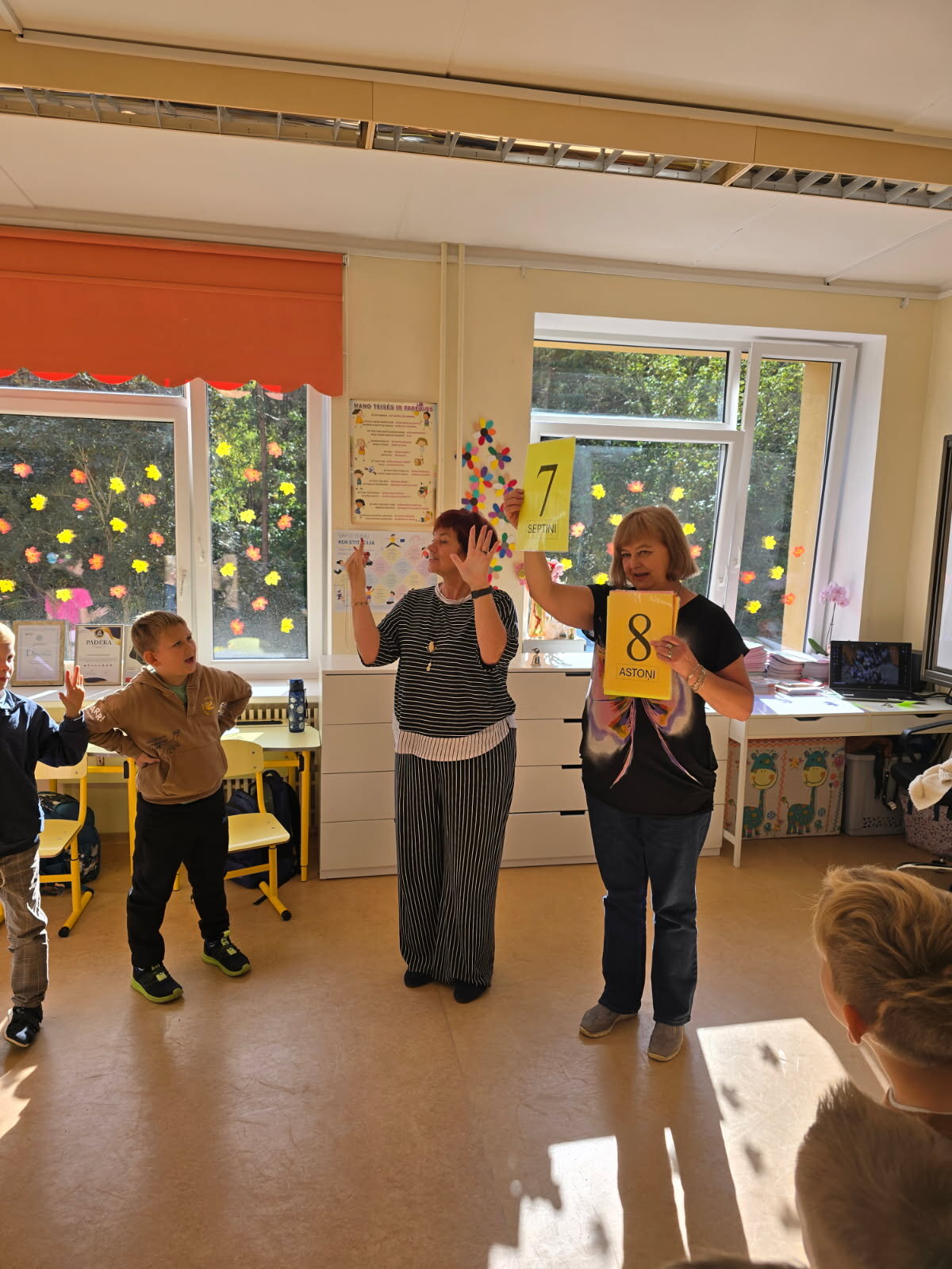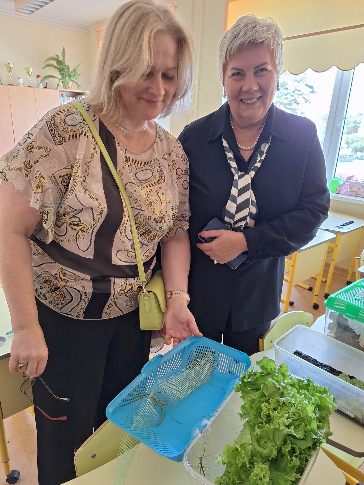 Mūsų viešnios iš Kraslavos irgi sėdo į suolus ir stropiai sekė mokytojos Vaivos lietuvių kalbos pamoką. Joms puikiai sekėsi lietuviškai skaityti ir skaičiuoti, o pamokos hitu tapo visiems gerai žinomi ,,Du gaideliai”.