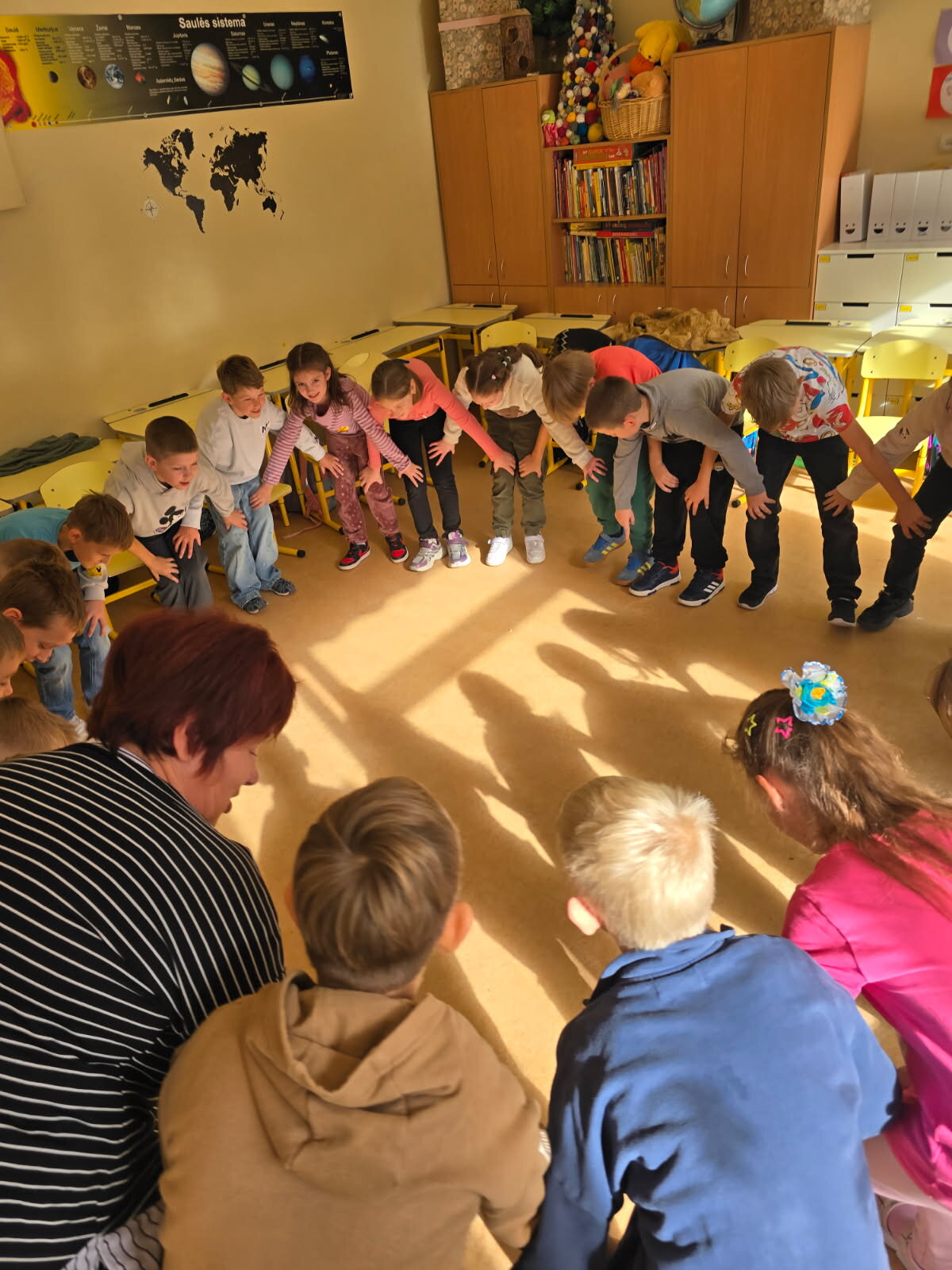 2a klasės mokiniai mokėsi ne tik latviškų žodžių, bet ir šokių. Buvo smagu suktis ratelyje su mokytojomis Inta ir Ligita.