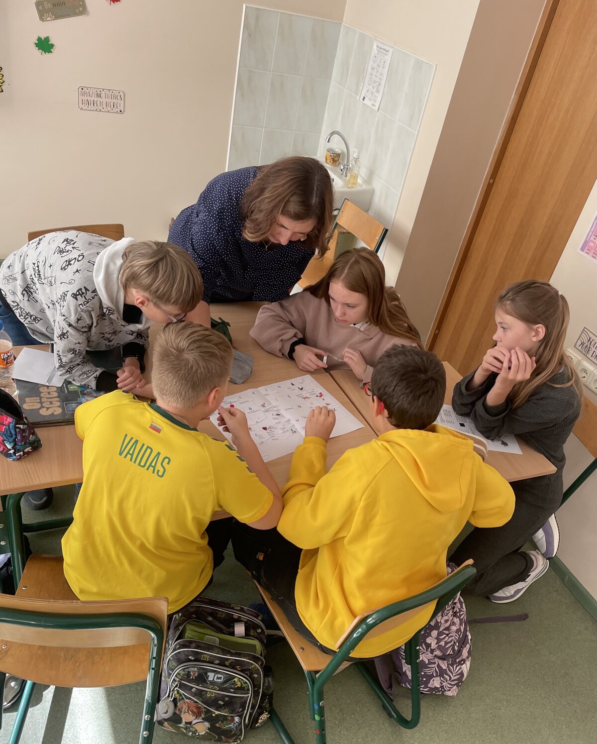 5–6 klasių mokiniai turėjo ypatingą galimybę mokytis latvių kalbos kartu su mokytojomis iš Kraslavos gimnazijos. Vaikai mokėsi pasisveikinti, padėkoti, skaičiuoti latviškai, o antrokai kartu su viešniomis smagiai sukosi latvių liaudies rateliuose. Svečiai taip pat dalyvavo lietuvių kalbos pamokoje, kurioje puikiai sekėsi skaityti bei skaičiuoti lietuviškai.