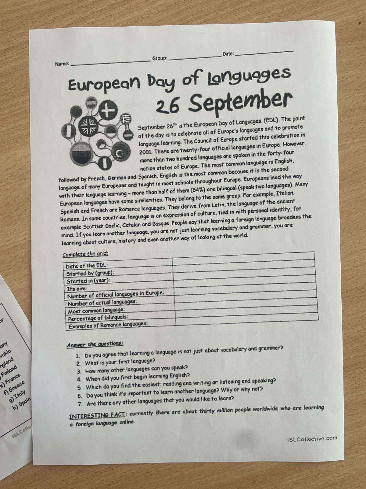 2025 m. rugsėjo 26 d. mūsų gimnazijoje paminėta Europos kalbų diena. Tai diena, primenanti apie kalbų įvairovę, jų svarbą ir grožį.