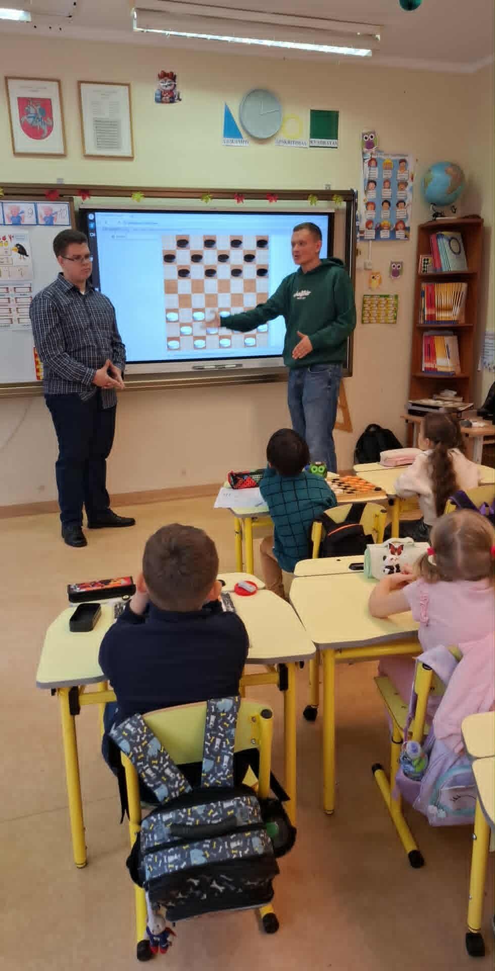 2025 m. spalio 17 d. 1b klasės mokinius aplankė gimnazistai Tadas ir Martynas. Jie supažindino vaikus su šaškių žaidimu – papasakojo apie šaškių žaidimo atsiradimo istoriją, paaiškino taisykles ir įėjimo būdus. Pamokoje netrūko smalsumo, juoko ir puikios nuotaikos! Vaikai džiaugėsi galėdami išbandyti žaidimą ir mokytis iš vyresniųjų draugų. Nuoširdžiai dėkojame gimnazistams Tadui ir Martynui už dovanotą džiaugsmą mažiesiems, o jų auklėtojai Jolantai Sadauskienė bei mokytojai Irenai Bikulčiūtei už šiltą bendradarbiavimą.