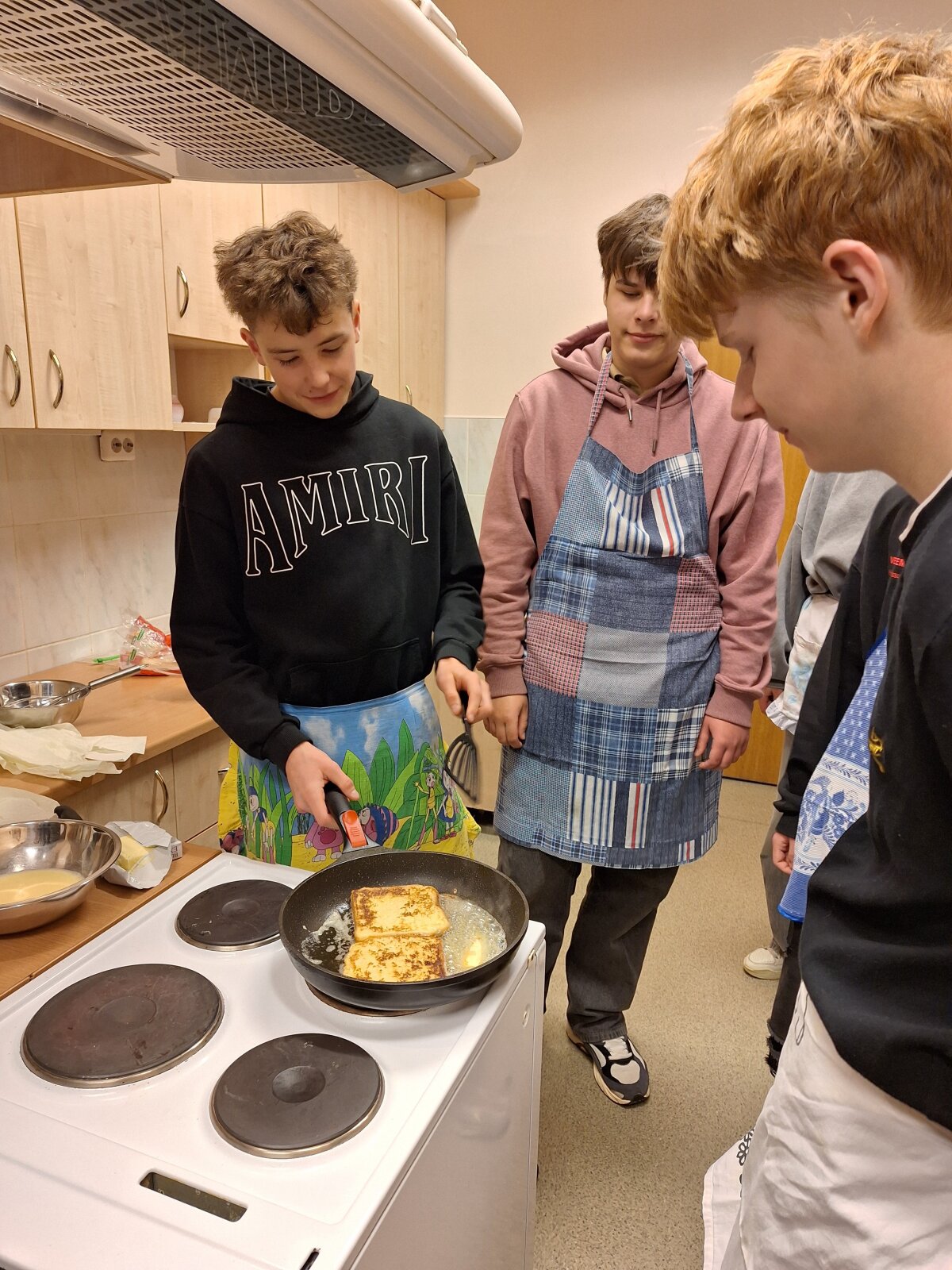 Dešimtokės kepė sausainius ,,Schweineohren” (,,Kiaulės ausys”), vaikinai gamino skrebučius ,,Arme Ritter” (,,Vargšai riteriai”), o devintokės Marta ir Mėja paruošė net 2 ,,Šaltus šunis” (,,Kalter Hund”), lietuviško ,,Tinginio” gimines. Sofija ateičiai išvertė ir apipavidalino populiariųjų vokiškų bulvių salotų receptą.