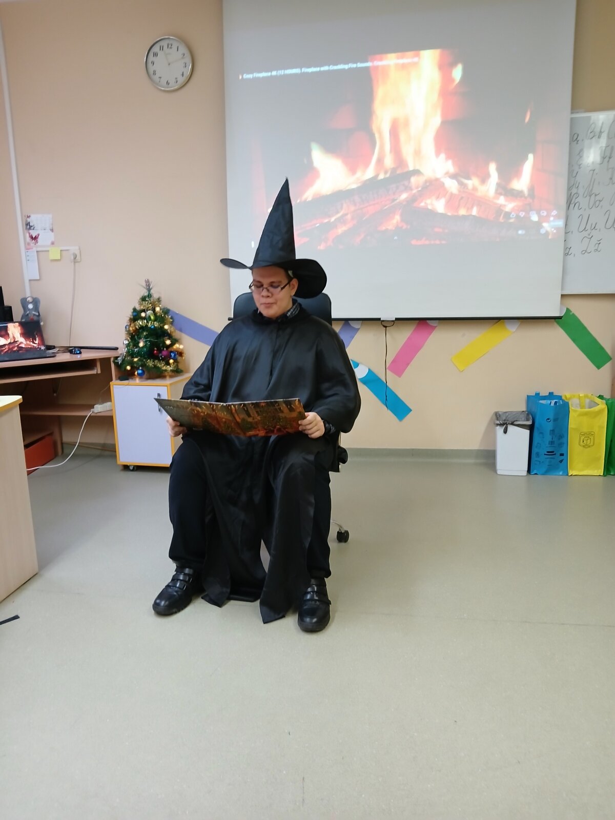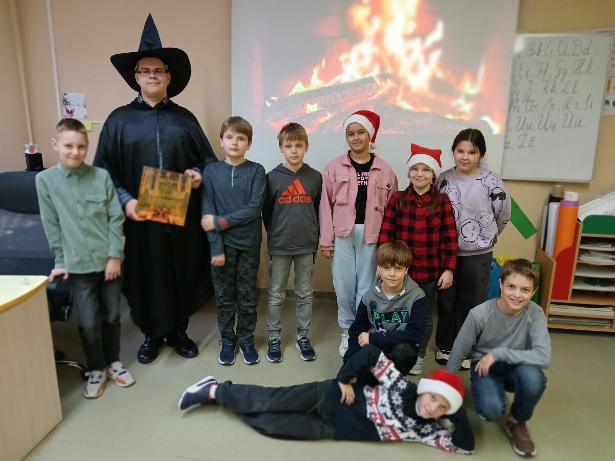 2025 m. gruodžio 12 d. 4c klasės mokiniams pasaką skaitė IV klasės gimnazistas Martynas Bondaras. Jis pristatė J. K. Rowling kūrinį „Kalėdos Hogvartse“. Mokiniai su dideliu susidomėjimu klausėsi pasakos, aktyviai dalyvavo diskusijoje, atsakinėjo į klausimus ir vaišinosi saldainiais. Dėkojame Martynui Bondarui už išraiškingą ir kūrybišką skaitymą.