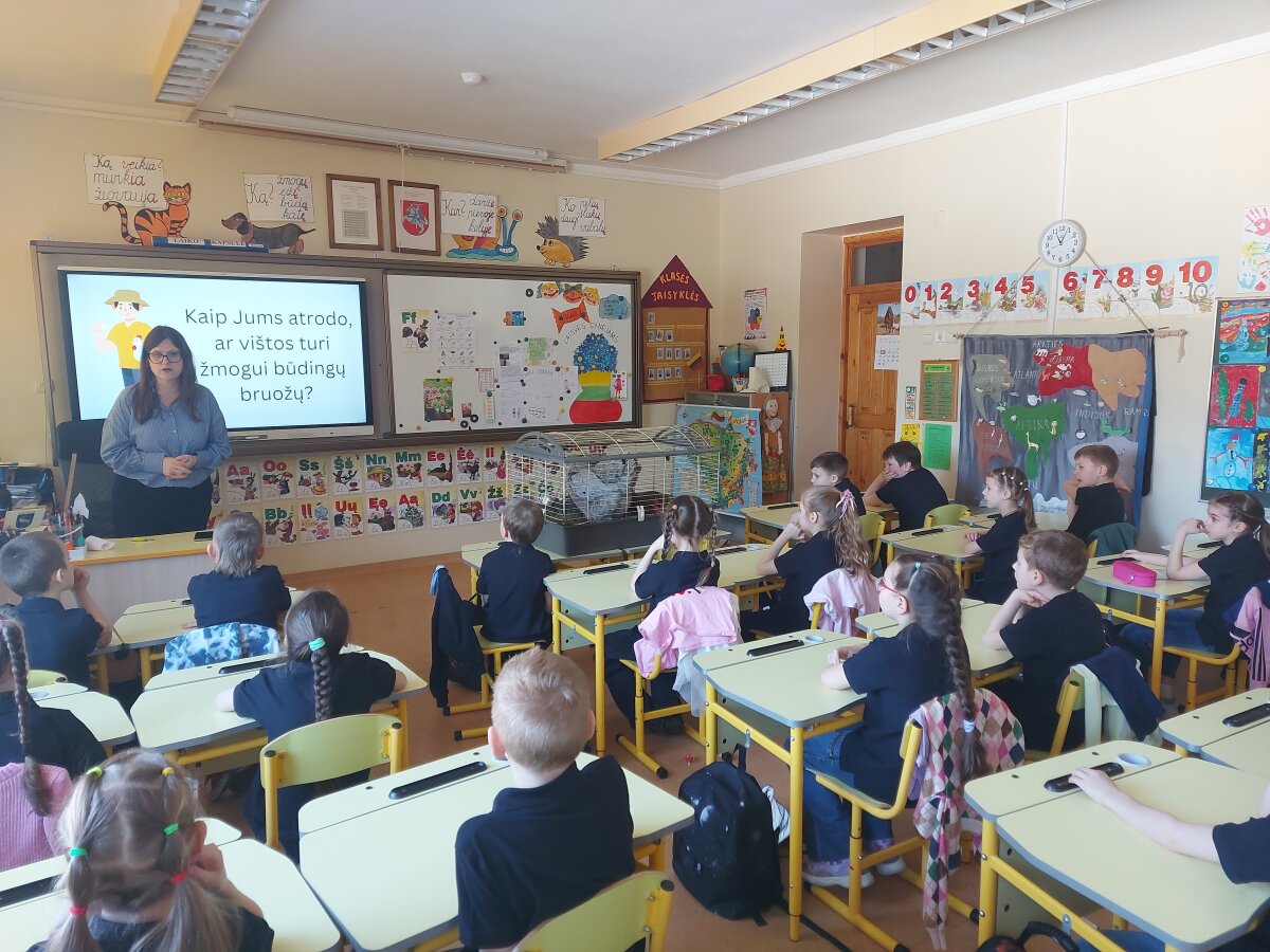 2026 m. kovo 10 d. 1a klasėje vyko netradicinė matematikos pamoka. Matematikos mokytoja Agnė Kulienė vaikams įdomiai ir įtaigiai papasakojo apie savo augintines - egzotiškųjų veislių vištas. Viena jų vardu Ko ko. Pirmokai mėgavosi didžiausios pasaulyje vištų veislės vištų porelės kompanija. Mokiniai atliko įvairias užduotis ir skaičiavo, kiek įvairių veislių vištos deda kiaušinių per metus, palygino pagal vištų dydį, pagal veisles, tyrinėjo vištų kiaušinių spalvas ir rinko vardą gaidžiui. Veikla netradicinėje pamokoje ugdė mokinių pažinimo, komunikavimo kompetencijas.