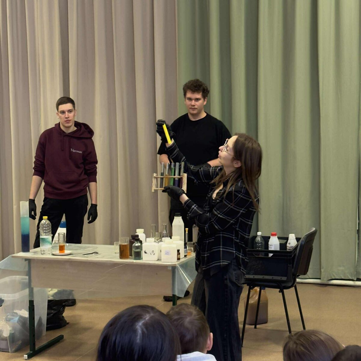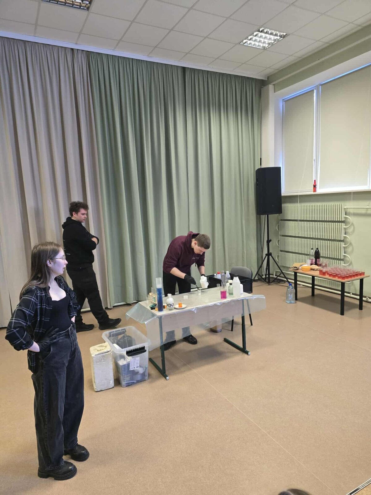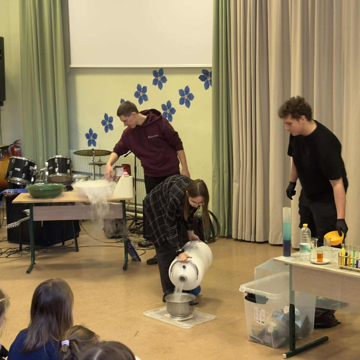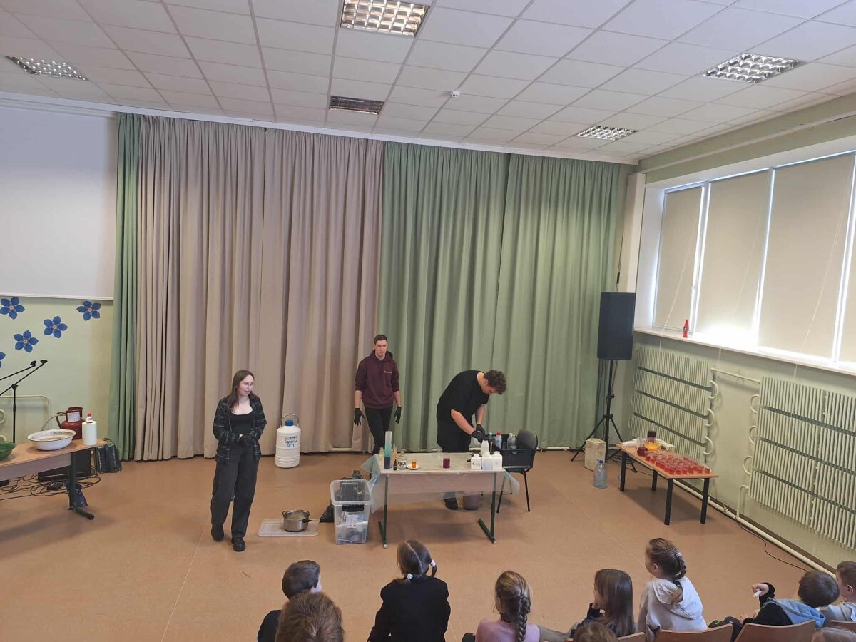 2026 m. sausio 30 d. mūsų gimnazijoje viešėjo KTU studentų mokslinės draugijos nariai Karina Kuzborskaja, Benas Jaliniauskas ir Hermas Maceikis. Jie 4a, 3a, 3b, 2a, 2b, 1b ir 1c klasių mokiniams ir jų mokytojams organizavo „Įdomiųjų cheminių eksperimentų“ pasirodymus, kuriuose cheminius reiškinius paaiškino remiantis konkrečiais praktiniais pavyzdžiais: skystu azotu, degančiomis rankomis, šokančiomis liepsnomis, auksiniu lietumi, fluorescencija. Mokiniai stebėjo įvairius bandymus, pasivaišino gėrimu su sausu ledu.