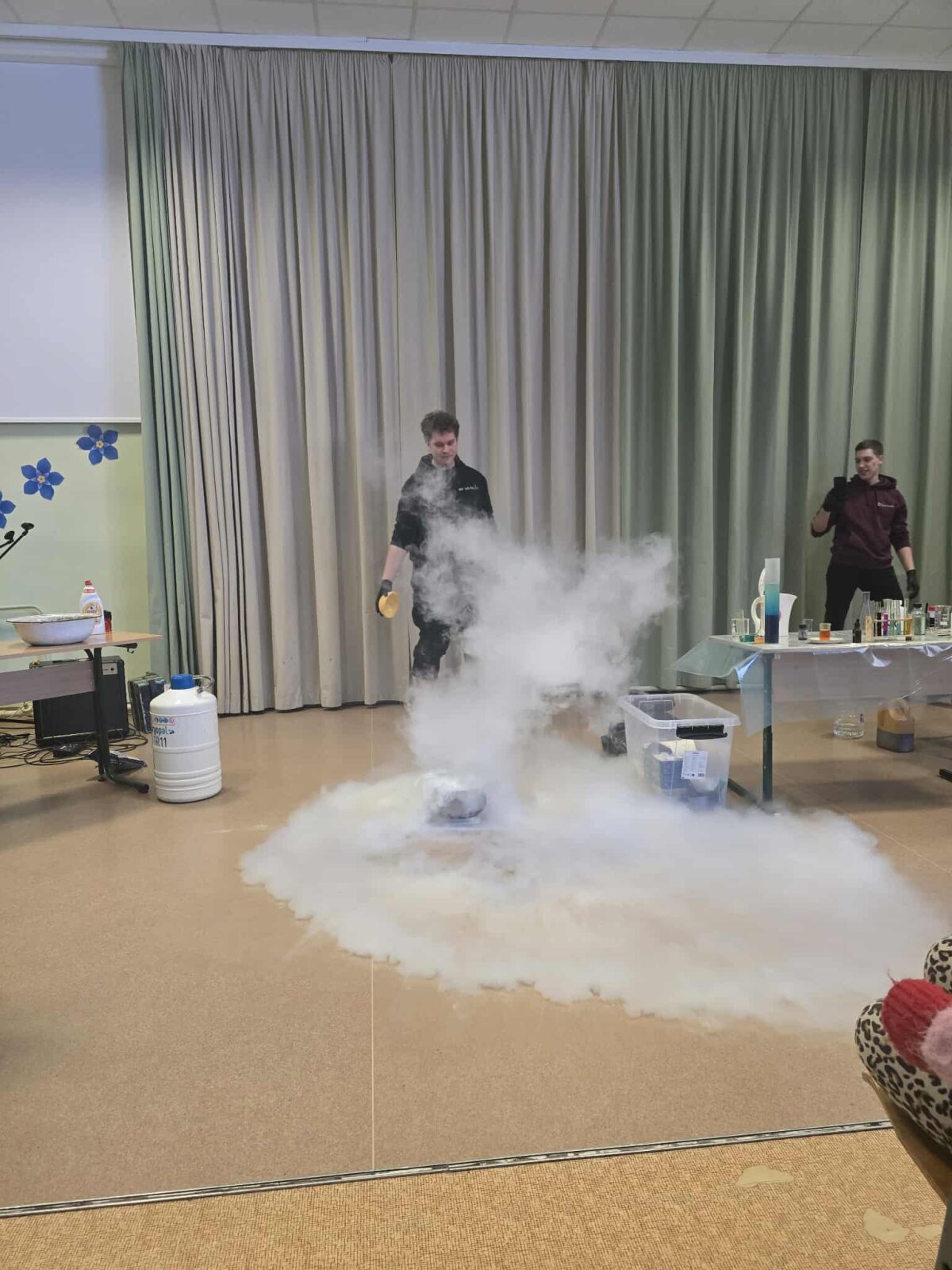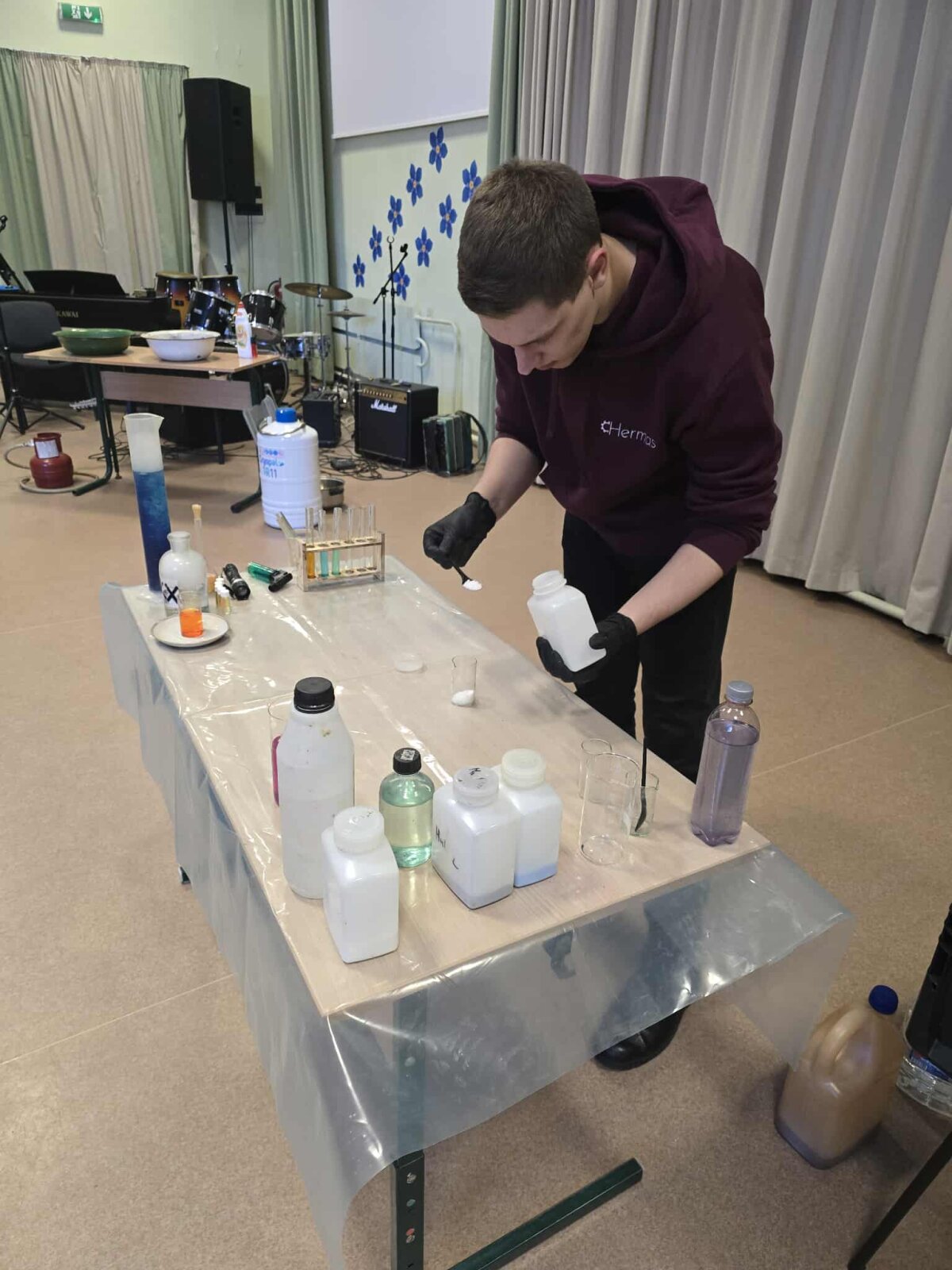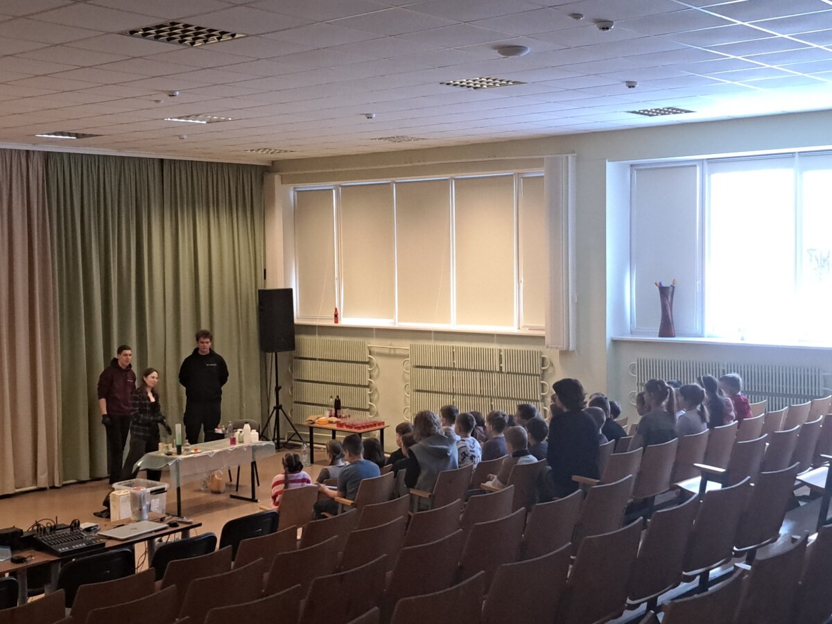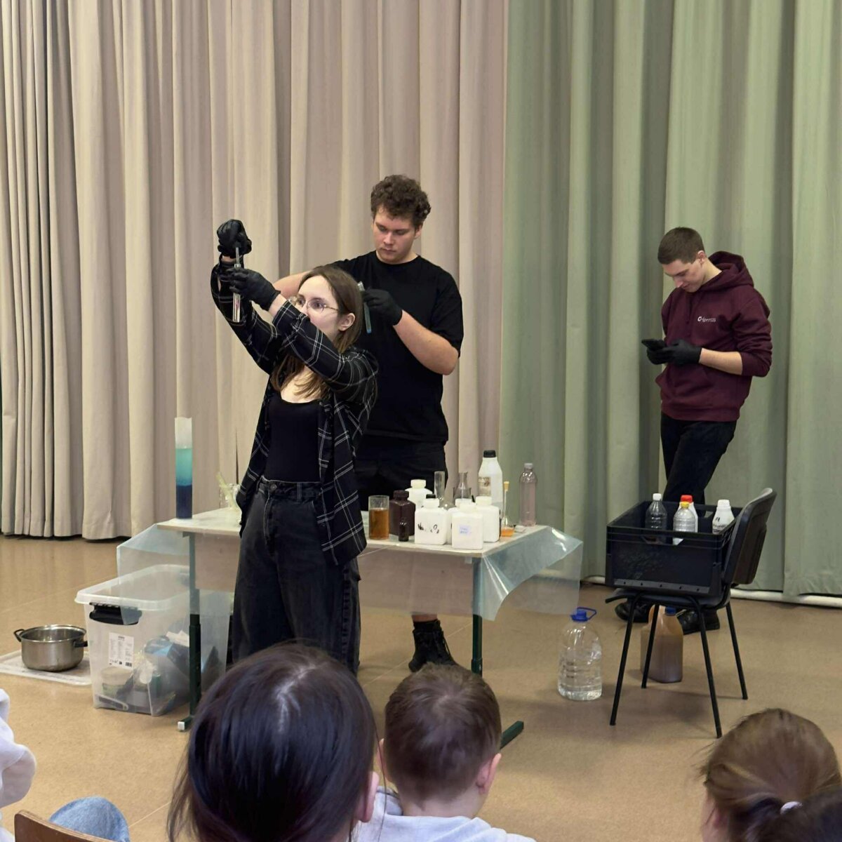 2026 m. sausio 30 d. mūsų gimnazijoje viešėjo KTU studentų mokslinės draugijos nariai Karina Kuzborskaja, Benas Jaliniauskas ir Hermas Maceikis. Jie 4a, 3a, 3b, 2a, 2b, 1b ir 1c klasių mokiniams ir jų mokytojams organizavo „Įdomiųjų cheminių eksperimentų“ pasirodymus, kuriuose cheminius reiškinius paaiškino remiantis konkrečiais praktiniais pavyzdžiais: skystu azotu, degančiomis rankomis, šokančiomis liepsnomis, auksiniu lietumi, fluorescencija. Mokiniai stebėjo įvairius bandymus, pasivaišino gėrimu su sausu ledu.