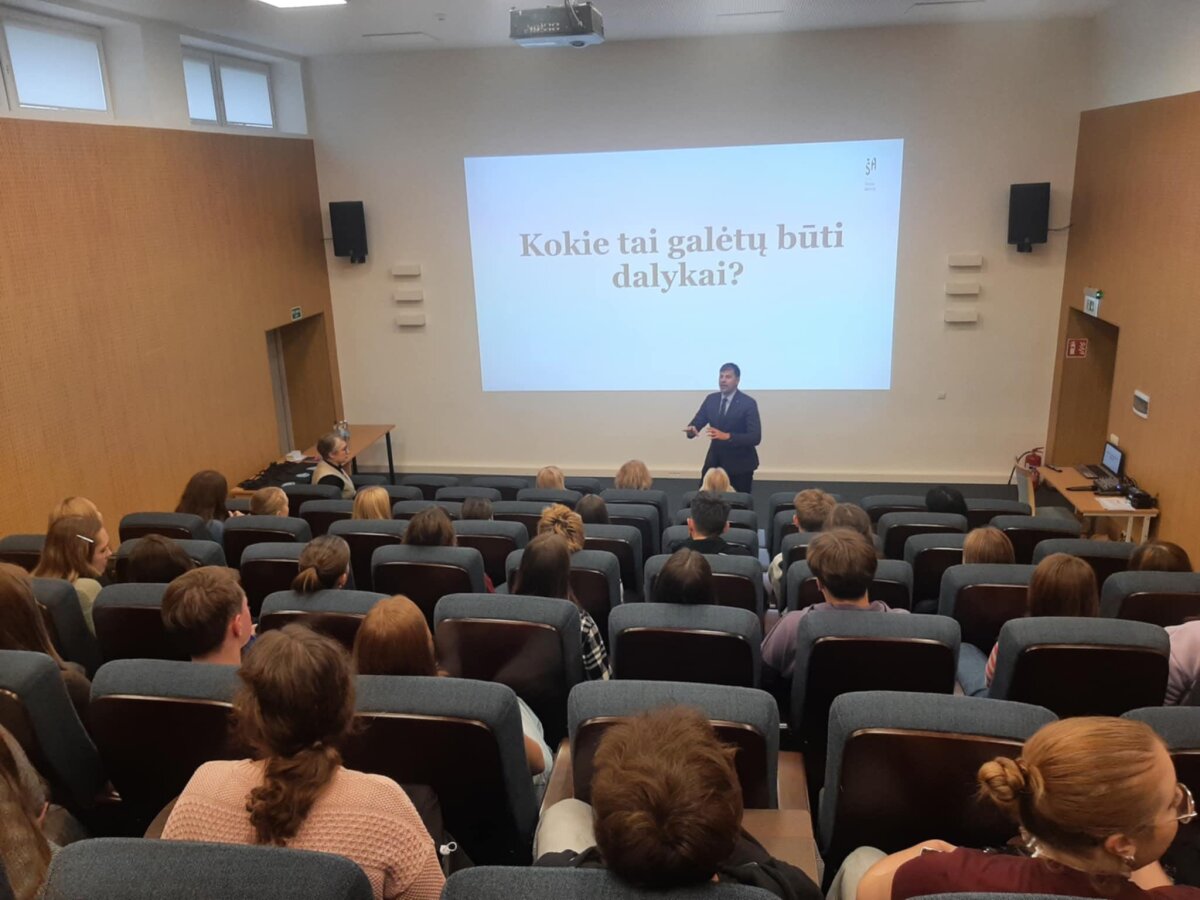 Renginio metu gimnazistai klausėsi įkvepiančios paskaitos, kurią skaitė Vytauto Didžiojo universiteto (VDU) Švietimo akademijos kanclerio pavaduotojas Mindaugas Nefas. Pranešėjas dalijosi savo patirtimi, įžvalgomis apie šiuolaikinio mokytojo vaidmenį ir paskatino mokinius drąsiai ieškoti savo kelio švietimo srityje.