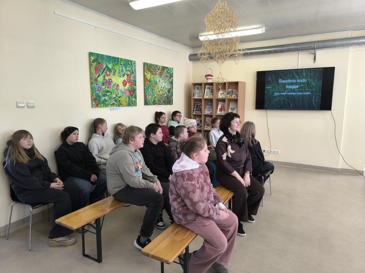Meikštuose mus ypač sudomino sodų rišėja (vyresnioji bibliotekininkė ) Jolanta Žuromskienė, atskleidusi sodų paslaptį geram kūdikio miegui, jų rišimo tradicijas ir kitas įdomybes. Prie ilgiausio unikalaus savo gaminio (3 m.) garsi bibliotekininkė-edukatorė pristatė savo kurtą eksponatą parodai „Aukso vainikas“ bei kita. Mums labai patiko nuotaikingas pasakojimas. Išgirdome apie metų trukmės procesą nuo grūdo iki sodų rišimą žiemą... Ilgai nepamiršime dvasią glostančių įspūdžių.