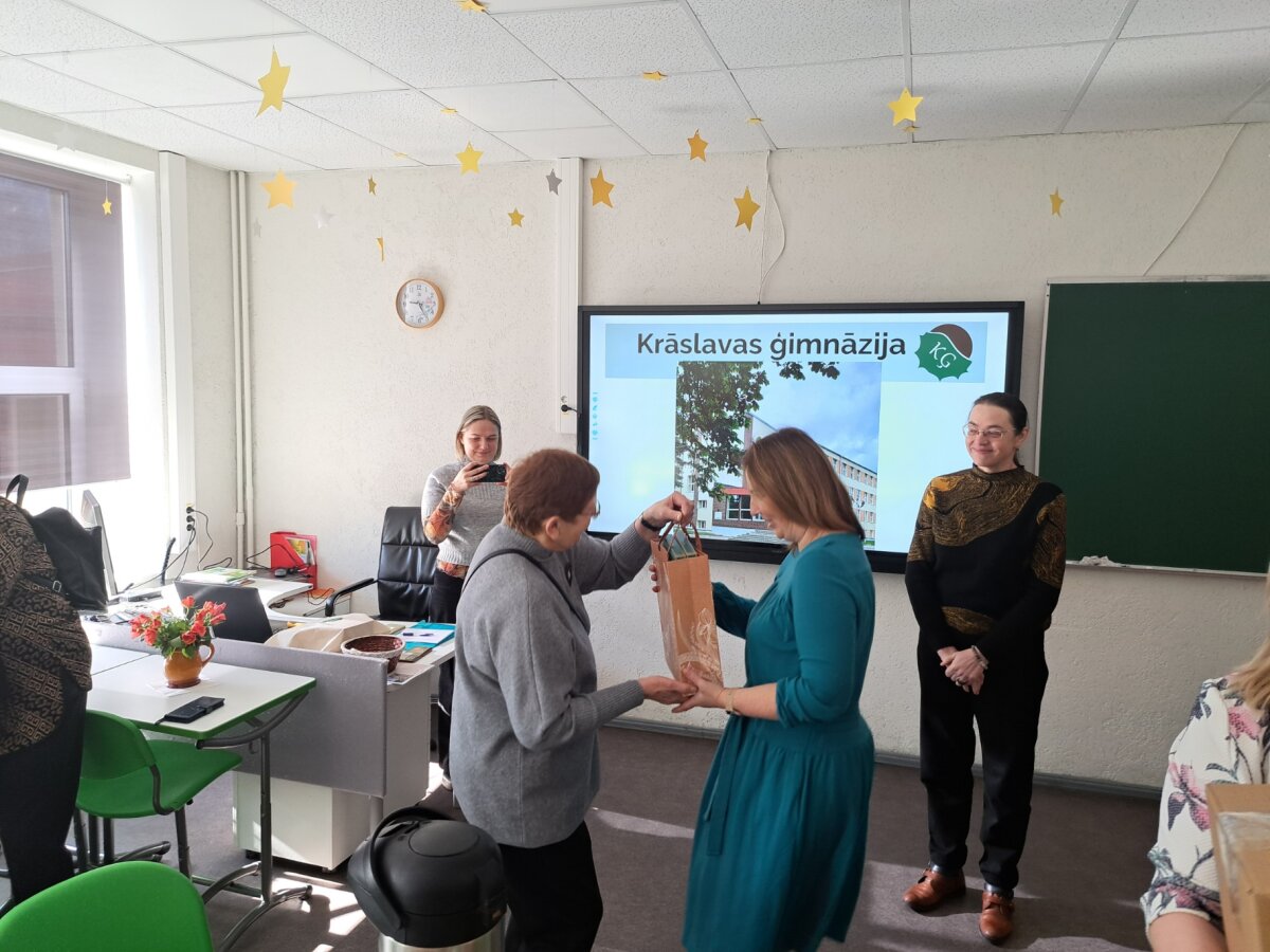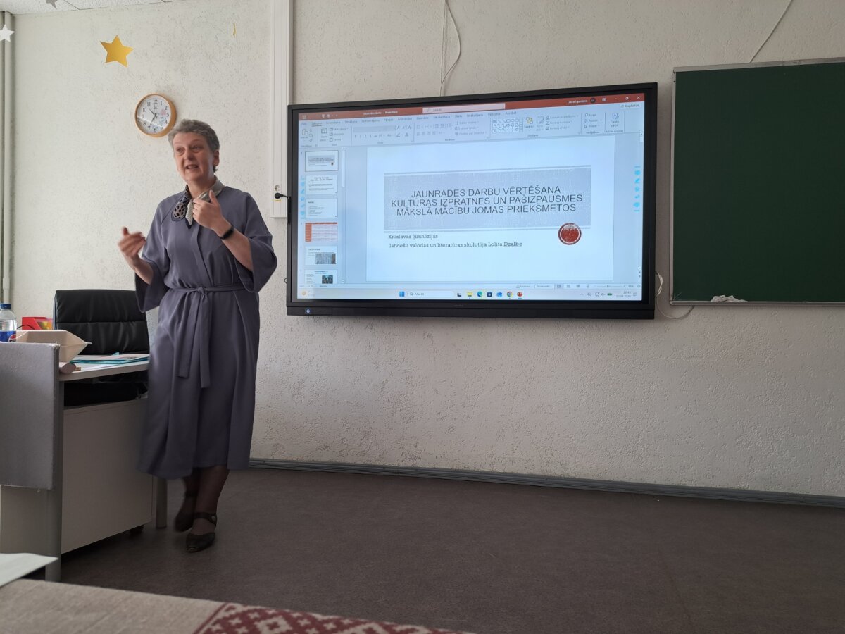 Latvių kalbos ir pradinių klasių mokytojos mums parengė prezentacijas apie gimnazijos tradicijas bei gimtosios kalbos dėstymo metodus, skatinančius mokinius daugiau skaityti bei kitakalbius dažniau vartoti latvių kalbą. Tikrai bandysime kai kurias idėjas įgyvendinti „Verdenėje“.