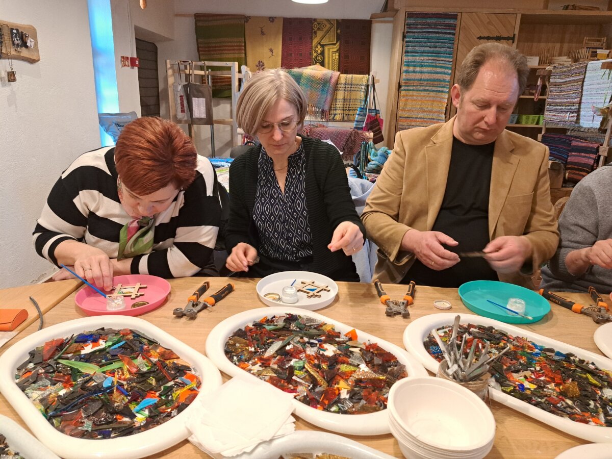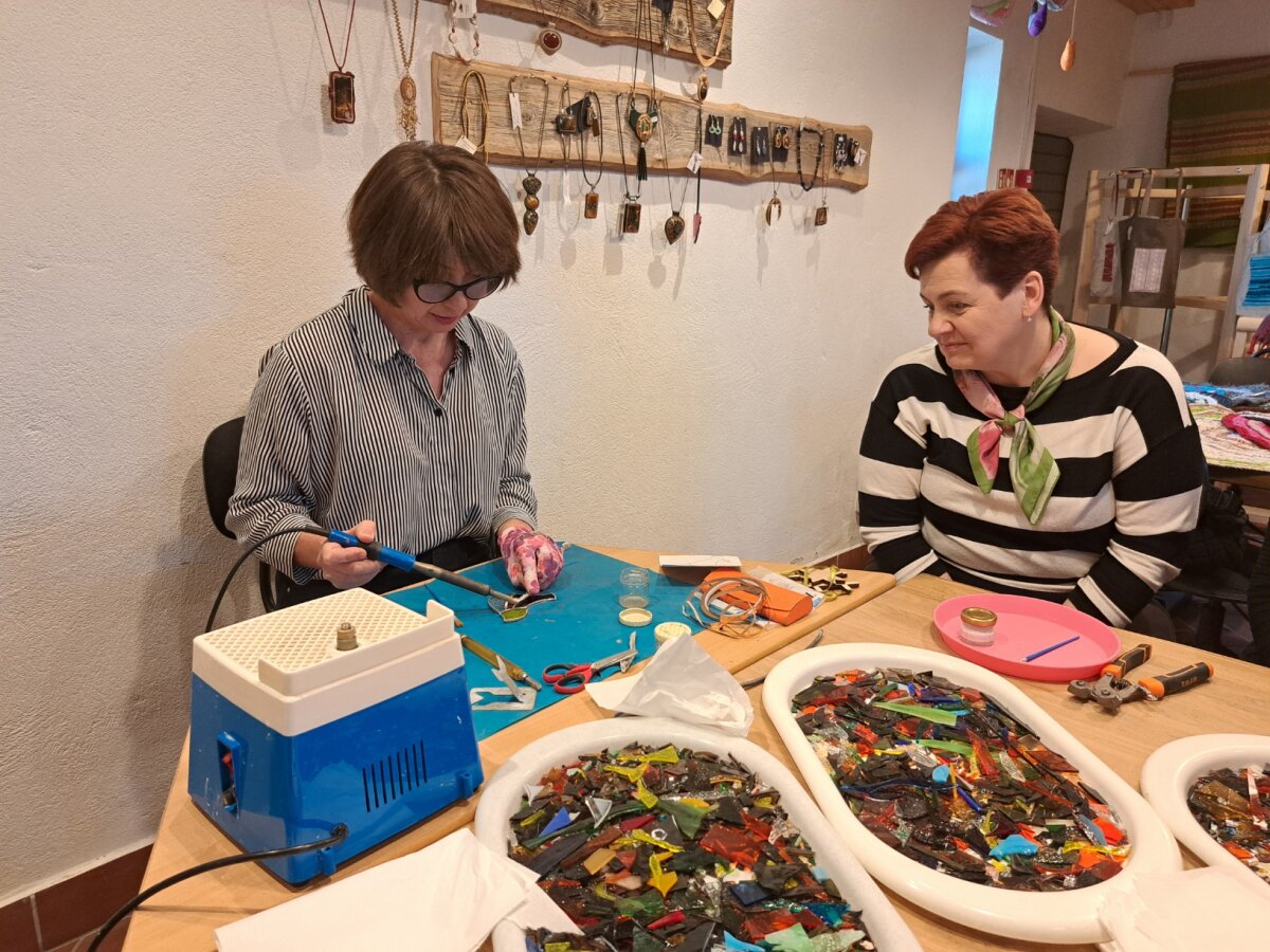 O Kraslavos amatų centre mūsų jau laukė tautodailininkė. Kūrėme vitražus. Derinant stiklo gabalėlių spalvas ir dydį, laikas tiesiog pralėkė.